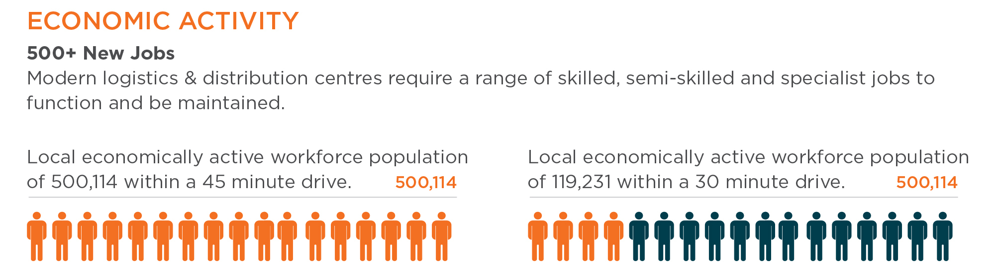 Local economically active workforce population of 500,114 within a 45 minute drive, 119,231 within a 30 minute drive.